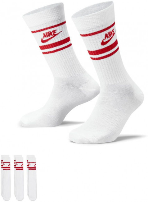 Созданные через призму спорта, носки Nike Sportswear Essential из легкого хлопка созданы для повседневного ношения. Трикотажная графика и полоски напоминают стиль 80-х годов. Амортизация в носке и пятке. Структурированная конструкция и резинка в области свода стопы обеспечивают надежную посадку. Трикотажная графика из полиэстера. В упаковке 3 пары.