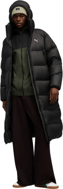 Длинный мужской пуховик Down Puffer Coat от Puma, произведенный с использованием технологии WarmCELL. Выполнен из ветроустойчивой ткани с влагоотталкивающей пропиткой, оснащен натуральным пухом и пером в соотношении 90/10. Капюшон, прямой крой, воротник-стойка, молния с ветрозащитной планкой, два боковых кармана для рук, утепленных флисовой подкладкой с одной из сторон.