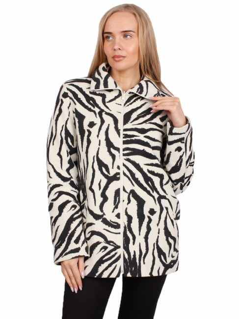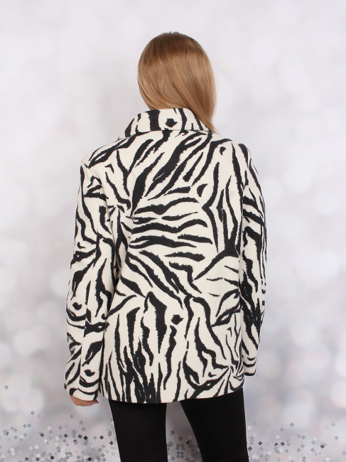 Стильное демисезонное женское пальто. Крой прямой с боковыми карманами. Воротник отложной.Цвет изделия комбинированный белый/чёрный расцветка-зебра. Застёжка-молния белого цвета. Состав-70% Шерсть 20% Полиамид 10% Кашемир.