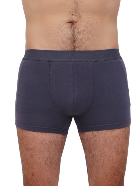 Комфортные мужские боксеры на резинке. Облегающий фигуру крой, не сковывает движения. Цвет изделия-тёмно-серый, однотонный, без декора и принтов. Материал- качественный хлопок, с небольшим добавлением (8%) эластана.
