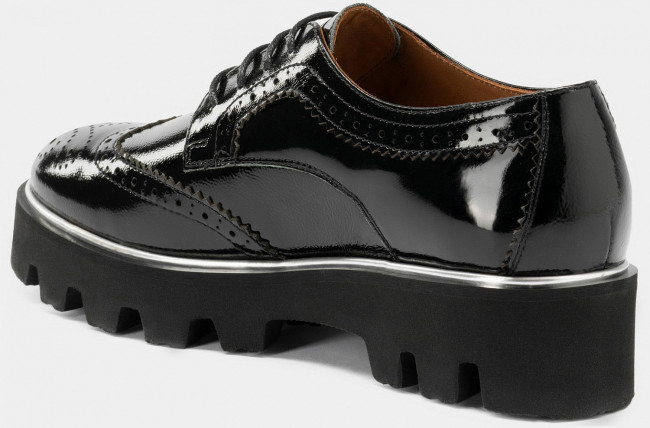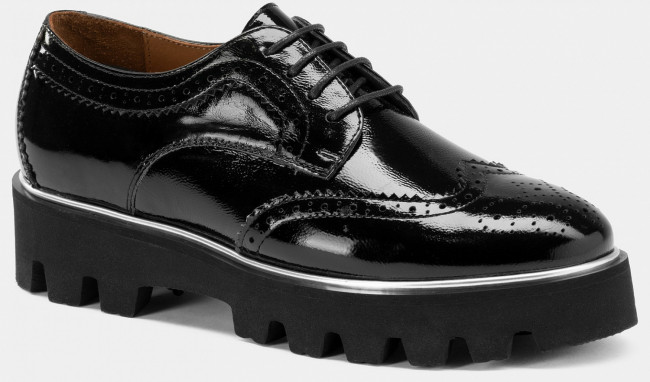 ПодробнееСтильные женские полуботинки ELINA из лаковой кожи черного цвета, дополнены широкой подошвой с крупным протектором. Присутствует лазерная обработка. Ботинки со стандартной полнотой.
