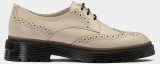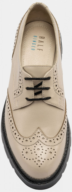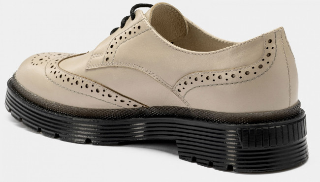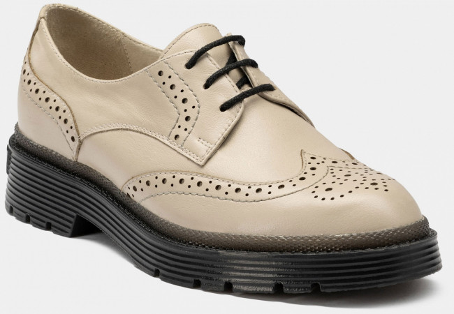 Изящные женские дерби CORA выполнены из гладкой качественной кожи. Декоративная перфорация делает данную модель модной и в то же время выделяющейся из большинства современной обуви. Туфли подходят для теплой погоды в демисезонный период. Высокая подошва защитит ноги в дождь, а шнуровка позволит отрегулировать объем. Модель легко совмещать с деловой одеждой, а также с образами в городском стиле.