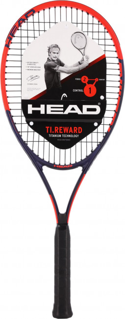 Ti. Reward - идеально подходит для игроков начального уровня. Титаналовый плав придает комфортные ощущения при игре. Рекомендуется для широкого круга игроков от начинающего уровня до продвинутого. Вес позволяет хорошо разгонять ракетку и совершать мощные и точные удары. Технология Damp+ для уменьшения вибрации. Специальная вставка из виброгасящего материала в основании вилки (элемент конструкции ракетки). При этом, воздействие вибрации на мышцы и суставы игрока минимально. Увеличивается точность удара. Вес: 285 грамм; технология Titanium; площадь головы: 105"; баланс: 325 мм; струнная формула: 16/19. Ручка 3. Со струнами. С чехлом.