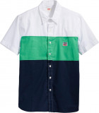 ПодробнееМодная мужская рубашка из трех цветных блоков в спортивном стиле. Выполнена из 100% хлопка. Классический крой. Воротник на пуговицах. Передняя планка на пуговицах.