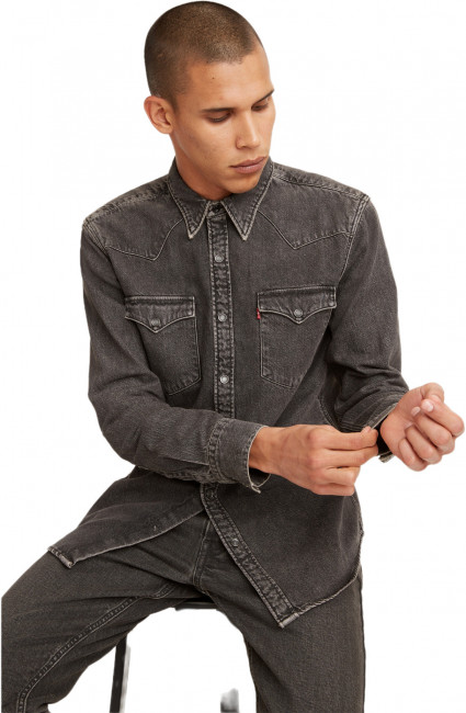 Джинсовая рубашка Levis Barstow Western Standard в стиле вестерн черного цвета. Выполнена из 100% хлопка. Прямой крой. Длинные рукава с кнопками на манжетах. Фигурная кокетка. Изогнутый подол рубашки. Два нагрудных кармана с клапанами на кнопках. Сочетайте рубашку с любимыми джинсами, носите с футболкой как пиджак - на Диком Западе нет никаких правил.