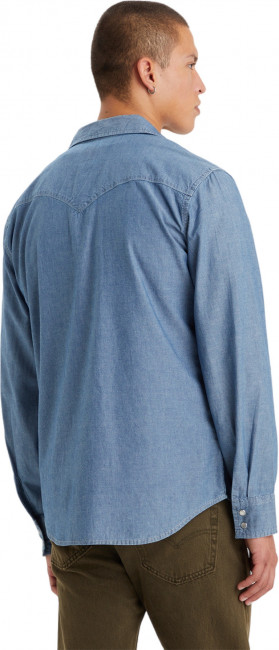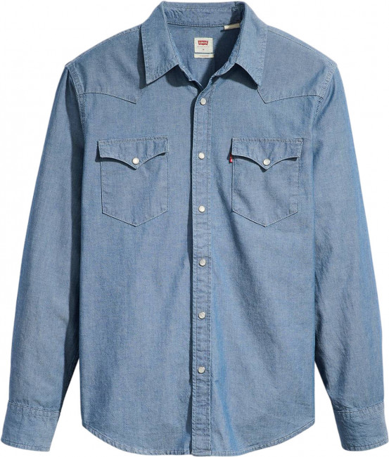 Классическая джинсовая рубашка Levis в стиле вестерн. Выполнена из 100% хлопка. Прямой крой. Длинные рукава с кнопками на манжетах. Фигурная кокетка. Изогнутый подол рубашки. Два нагрудных кармана с клапанами на кнопках. Сочетайте рубашку с любимыми джинсами, носите с футболкой как пиджак - на Диком Западе нет никаких правил.