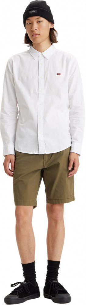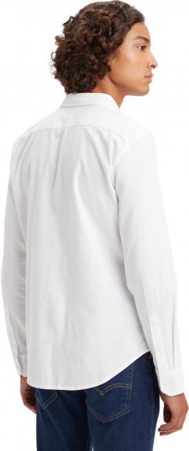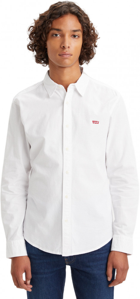 Классическая рубашка Levis белого цвета. Выполнена из 100% хлопка. Застегивается на пуговицы. Прямой крой, закругленный подол, длинные рукава с манжетами на пуговицах. Вышивка логотипа Levis Batwings на груди слева. Заправьте ее в любимые джинсы или носите навыпуск - останетесь модным в любом случае.