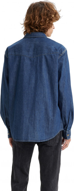 Джинсовая рубашка Levis Relaxed Fit Western в стиле вестерн с длинными рукавами. Планка с застежкой на пуговицы. Оригинальные западные детали. Изогнутый подол рубашки, заостренный воротник, фигурная кокетка. Нагрудные карманы с заостренными клапанами и манжеты на пуговицах.
