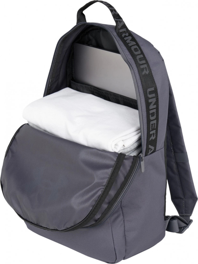 Рюкзак имеет удобные и регулируемые лямки, что позволяет комфортно носить рюкзак на спине даже при длительном ношении. Жаккардовая тесьма с надписью Under Armour сверху составляет ручку для ношения рюкзака в руке.