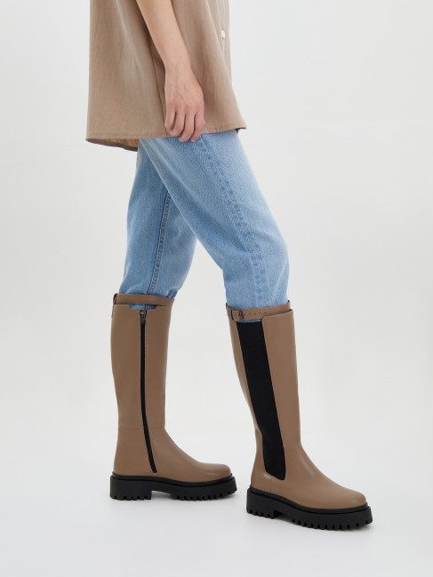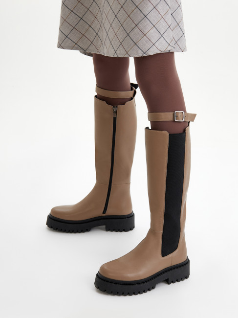 Женские сапи светло-коричнево цвета. Верх модели выполнен из мягкой натуральной кожи. Подкладка из кожи и текстиля отлично впитывает влагу. Продуманная колодка и устойчивый каблук обеспечивают комфорт. Гибкая ТЭП подошва амортизирует и держит сцепление с любой поверхностью. Высокие сапи с ремешком на голени оригинальная модель на каждый день. Модель дополнит стрий casual образ и деловой стиль.