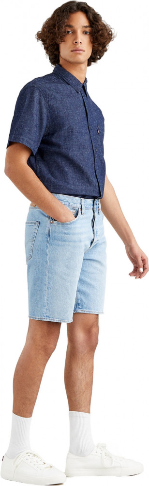 Мужские джинсовые шорты 501 Levis. Легендарный крой с ширинкой на пуговицах и аутентичный внешний вид. Прямой крой. Сочетаются с любой футболкой с круглым вырезом для создания классического американского образа. Пуговица на металлической стойке с логотипом Levis. Классический стиль с пятью карманами. Фирменный лейбл Levis и дугообразные строчки на задних карманах. Нашивка с культовым логотипом Two Horse Pull, олицетворяющим прочность.