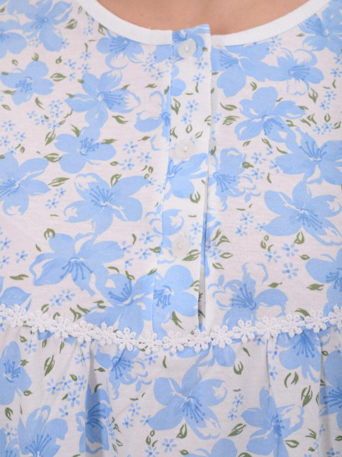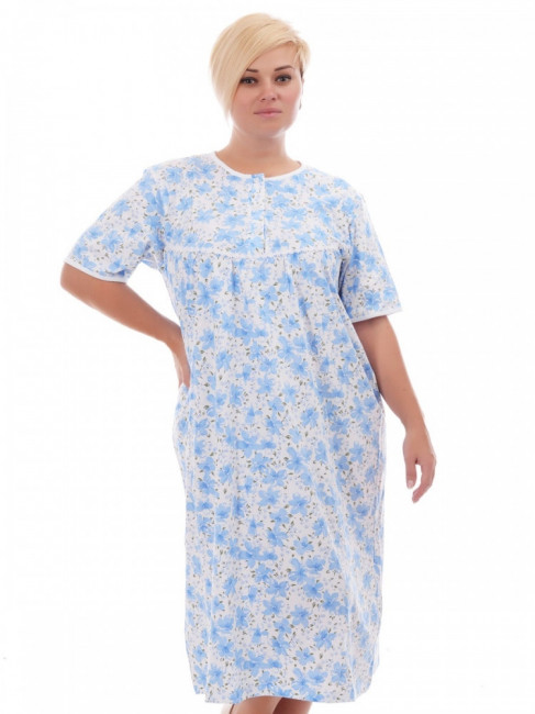 Сон – это из частей жизни, когда хочется наслаждаться не только тишиной и покоем, но и удобством. Ночная сорочка – это именно та одежда, в которой женщина будет чувствовать себя не только свободно и непринужденно, но и спокойно. Изделие, которое предлагает наш сайт, выполнено в довольно интересной манере, с завышенным ободком под грудью. Благодаря такой интерпретации ничего не будет давить и мешать. Короткие рукава и узоры в виде мелких цветочков смогут придать сорочке утонченный женский вид, а высококачественный материал защитит Вашу кожу. Также немаловажно, что стоит такая милая ночная рубашка довольно приемлемо, так что экономить деньги на сладком и комфортном сне вовсе не стоит.
