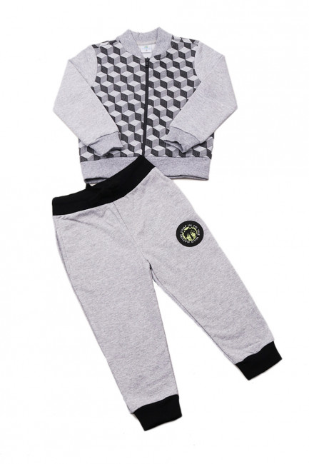 Стильный спортивный костюм для мальчика. Кофта на молнии, рукава с манжетами. Брюки прямые на манжетах, пояс на резинке. На изделии присутствует абстрактный принт.