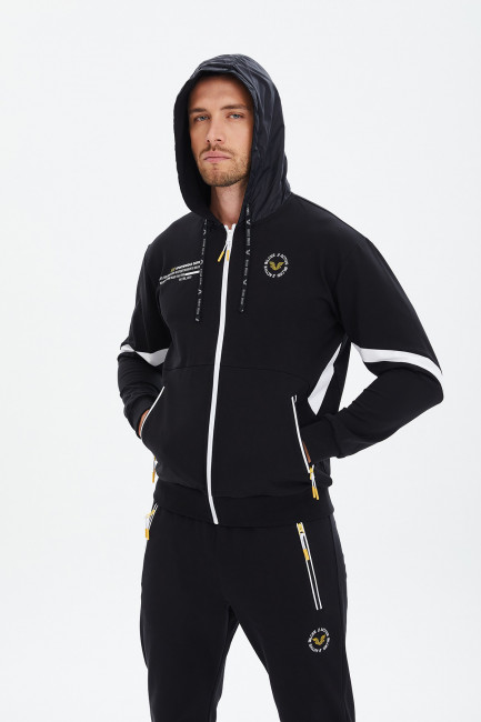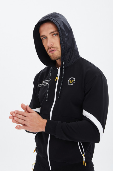 Толстовка на молнии и капюшоном имеет стильный и современный вид, что позволяет создавать многочисленные образы и сочетания. Карманы на молнии позволяют хранить необходимые вещи и аксессуары на руках, не беспокоясь о том, что они выпадут. Эта толстовка идеально сочетается с мужской брючной ансамблями или брюками из денима.
