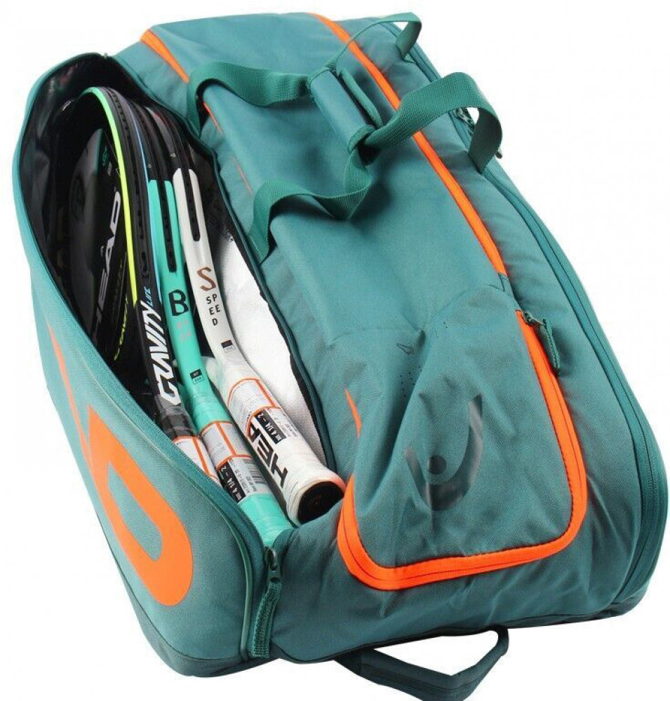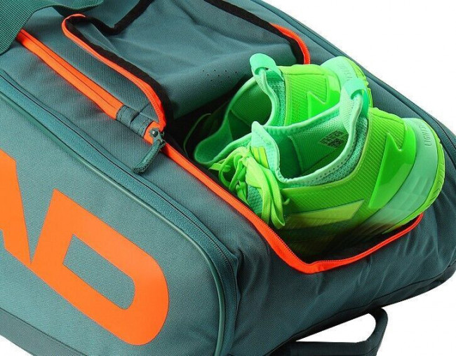Теннисная сумка Head Pro Racquet Bag XL – сумка вместимостью до двенадцати ракеток, дизайн которой относится к серии ракеток Head Radical 2023. Три просторных основных отделения вместят все необходимые теннисисту предметы. Отделение для хранения ракеток оснащено теплоизоляционной защитой. В одном из боковых отделений имеются внутренние сетчатые органайзеры. Отдельный встроенный вентилируемый отсек для обуви. Два внешних кармана для аксессуаров закрываются на молнии. Два регулируемых и удобных плечевых ремня, складные ручки и ручка для вертикальной установки сумки обеспечат удобную переноску. Использована технология Clima Control Technology.