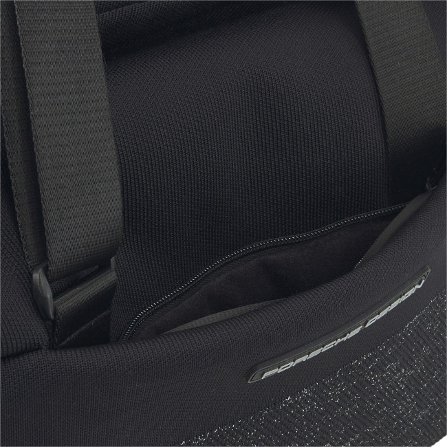 Для спорта, поездок и повседневной городской жизни: спортивная сумка Porsche Design EvoKNIT элегантна, многофункциональна и может похвастаться исключительным дизайном и конструкцией. Абсолютной изюминкой является ткань EvoKNIT в нижней части: светоотражающий, водоотталкивающий трикотаж из переработанного полиэстера в современном меланжевом виде придает спортивной сумке ее отличительный стиль. Структура основного отделения также необычна: вы можете легко и мгновенно отрегулировать объем большого отделения на молнии с помощью функции сворачивающегося верха и технической клипсы. Длинные лямки по бокам позволяют легко переносить вещи, независимо от того, что в ней находится. Ценные вещи и мелкие предметы можно хранить в скрытом переднем кармане на молнии или во внутреннем кармане с трикотажной сетчатой подкладкой. Завершают практичный дизайн два функциональных кармана по бокам, а также прорезиненные полосы для защиты и обеспечения надежного основания.