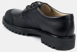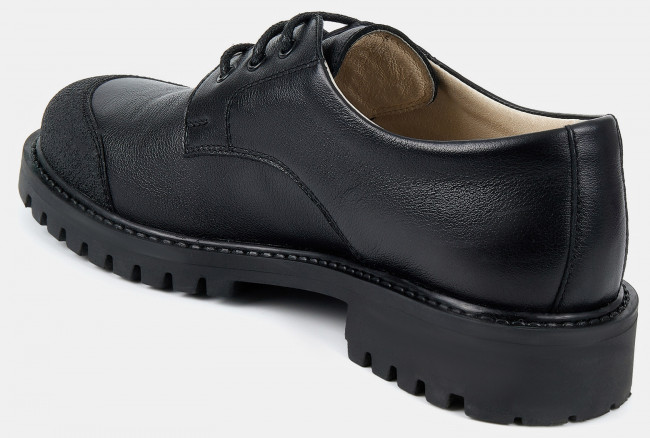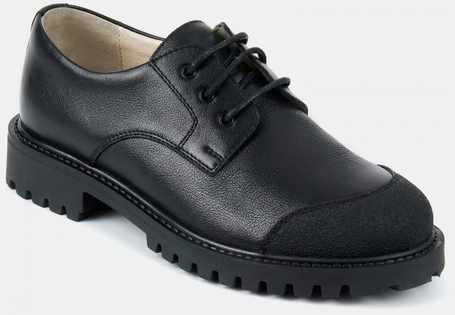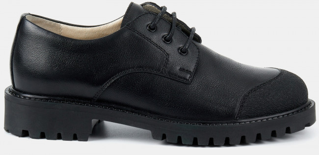 Детские полуботинки черного цвета. Верх модели выполнен из качественной натуральной кожи и технологичного текстиля. Кожаные подкладка и стелька отлично впитывают влагу. Классический силуэт дерби придает ботинкам изящности. Низкий каблук и анатомическая колодка обеспечивают комфорт. Подошва из ТЭП с глубоким протектором держит сцепление с любой поверхностью. Полуботинки на межсезонье и лето - обязательная составляющая базового гардероба. Модель дополнит любой строгий casual образ.