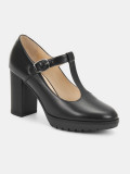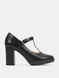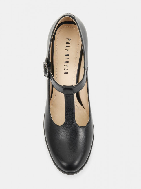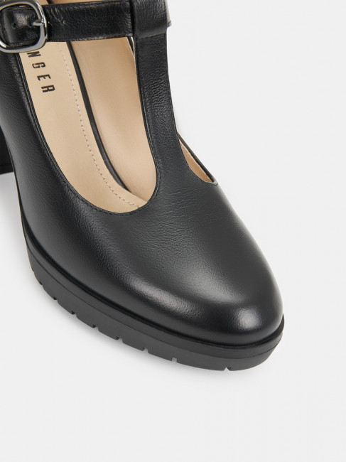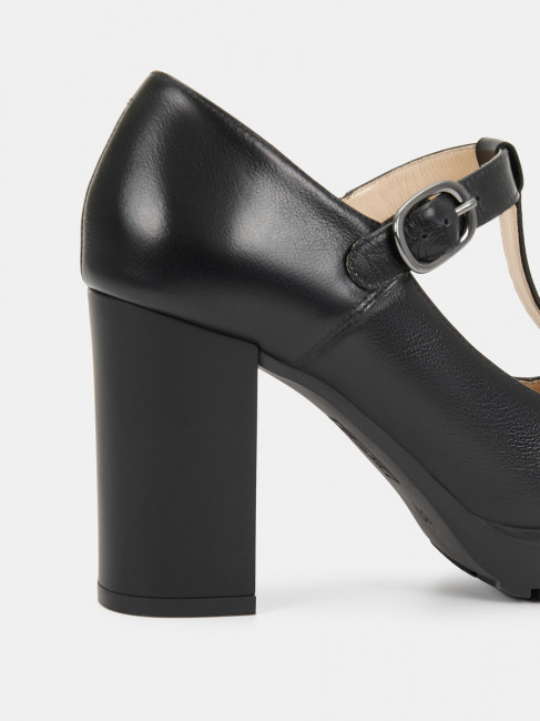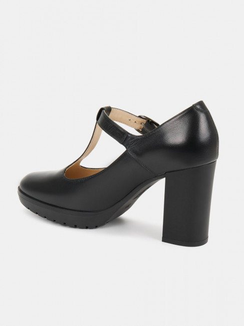 Туфли женские DORIS черного цвета на высоком устойчивом каблуке. Натуральная кожа верха, подкладки и стельки позволяет ногам дышать и поддерживает правильный микроклимат в обуви. Светлая подкладка не будет окрашивать стопы. Т-образный ремешок на подъеме визуально удлиняет ногу, застежка на щиколотке адаптирует модель к ногам разной полноты. Каблук 9 см устойчив за счет своей толщины, прочная подошва из ТЭП частично компенсирует его высоту. Черные туфли дополнят классические деловые и более женственные образы с платьями и костюмами.