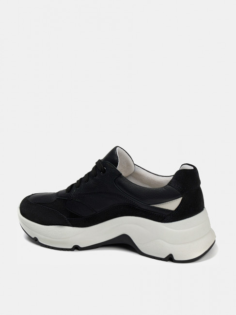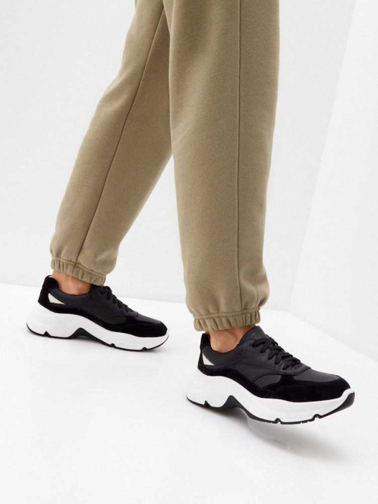 ПодробнееКроссовки женские GREY черного цвета на трендовой объемной подошве. Сочетание натуральной кожи и спилка делает модель легкой и эластичной, она прекрасно садится по ноге. Подкладка сочетает в себе текстиль и кожу, комфортные для ног в течение всего дня. Двухслойные стельки созданы специально для активной жизни: верхний слой из полиэстера дышит и отводит влагу, основа из антибактериального материала Polisport смягчает удары при ходьбе, чтобы ноги не уставали. Толстая, при этом легкая подошва из двух видов полиуретана хорошо амортизирует и устойчива к износу. Оригинальный протектор обеспечивает хорошее сцепление с любой поверхностью. Крепится подошва надежным литьевым способом, она не оторвется и не промокнет. Черные кроссовки дополнят повседневные образы с джинсами, брюками и спортивными костюмами.
