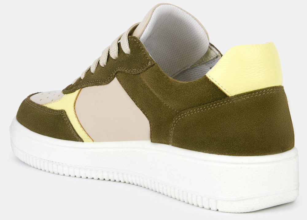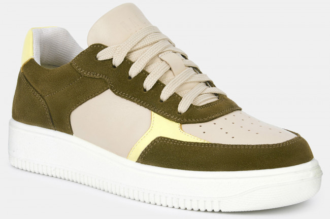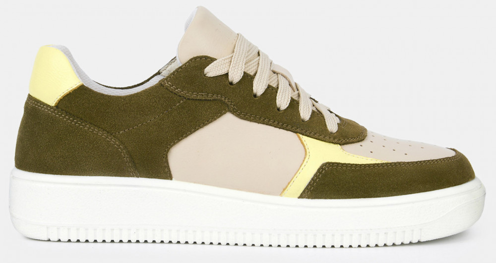 Кеды женские JAM бежевого цвета с отделкой оттенка хаки. Сочетание натуральной кожи и спилка делает пару практичной, она прекрасно садится по ноге и долго носится. Шнуровка регулирует посадку. Подкладка из текстиля и кожи позволяет ногам дышать. Двухслойные стельки созданы специально для активной жизни: верхний слой из полиэстера дышит и отводит влагу, основа из антибактериального материала Polisport смягчает удары при ходьбе, чтобы ноги не уставали. Подошва из двух видов полиуретана хорошо амортизирует и устойчива к износу. Оригинальный протектор обеспечивает надежное сцепление с любой поверхностью, литьевой способ крепления подошвы делает модель долговечной. Стильные бежевые кеды дополнят casual образы с джинсами и костюмами, а также спортивные сочетания с шортами и леггинсами.