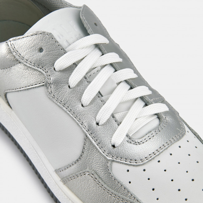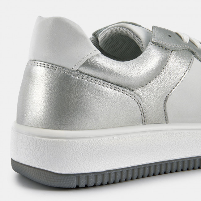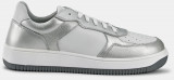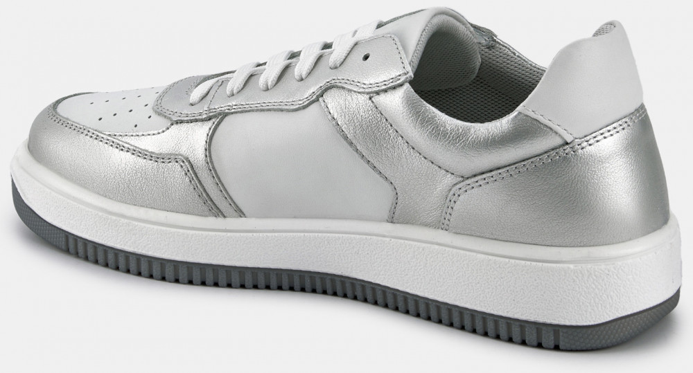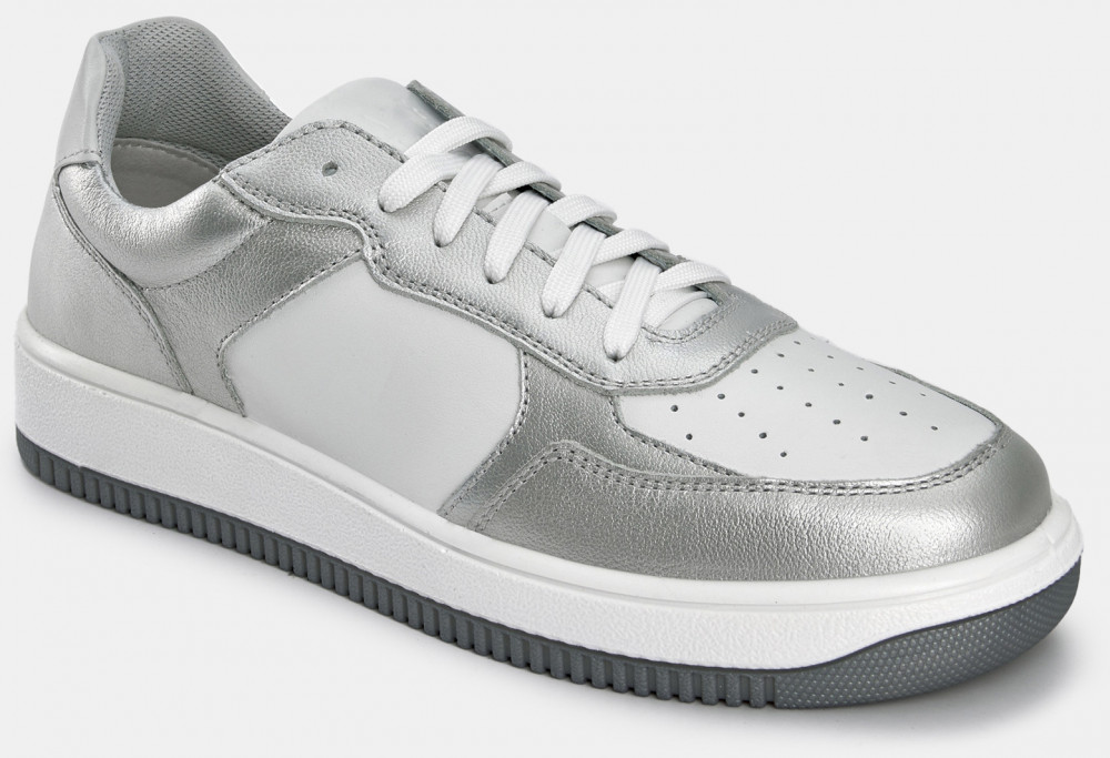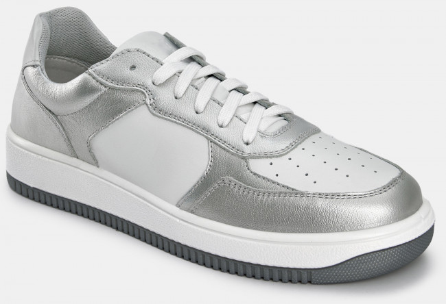 Кеды женские JAM серебряного цвета с белыми вставками. Натуральная кожа верха прочная и надежная, обувь прослужит долго. Шнуровка регулирует посадку. Подкладка из текстиля и кожи позволяет ногам дышать. Двухслойные стельки созданы специально для активной жизни: верхний слой из полиэстера дышит и отводит влагу, основа из антибактериального материала Polisport смягчает удары при ходьбе, чтобы ваши ноги не уставали. Подошва из двух видов полиуретана хорошо амортизирует и устойчива к износу. Оригинальный протектор обеспечивает надежное сцепление с любой поверхностью, литьевой способ крепления подошвы делает модель долговечной. Стильные серебристые кеды металлик дополнят casual образы с джинсами и костюмами, а также спортивные сочетания с шортами и леггинсами.