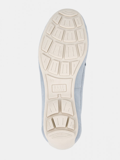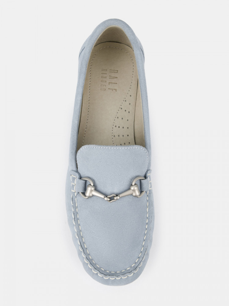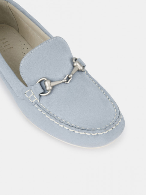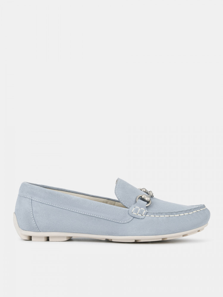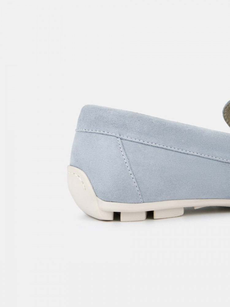 Мокасины женские KENYA голубого цвета. Модель подходит на широкую ногу. Верх из натурального спилка мягкий и эластичный, прекрасно садится по ноге. Пару украшает пряжка-трензель и узнаваемый мокасиновый шов на носке. Подкладка и стелька из натуральной кожи позволяют ногам дышать, поддерживают правильный микроклимат и не окрашивают стопы. Прочная и гибкая подошва из ТЭП долго служит и хорошо амортизирует. Голубые мокасины дополнят летние костюмы в нестрогом деловом стиле, а также более непринужденные образы с джинсами в стиле casual.