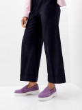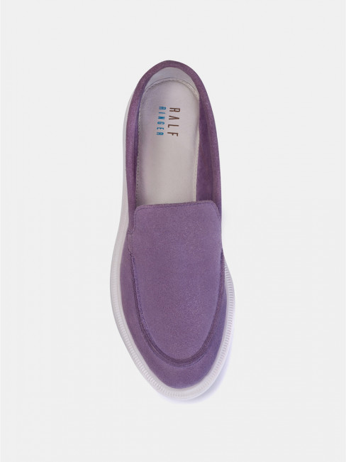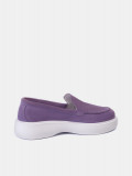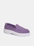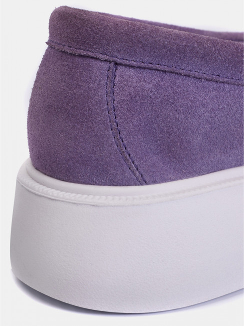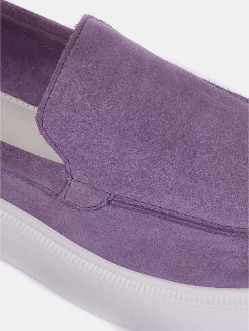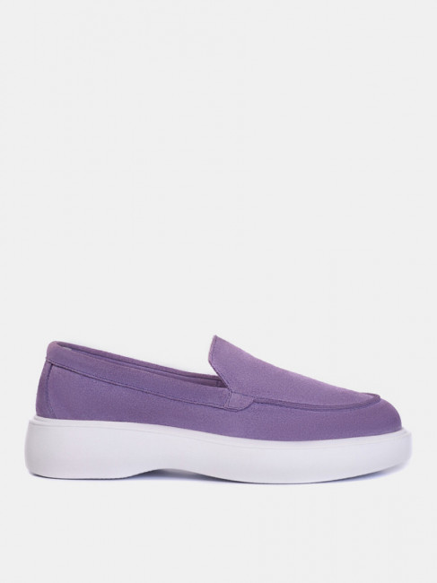 Женские лоферы фиолетового цвета. Модель выполнена из качественного натурального спилка. Кожаная стелька прекрасно впитывает влагу и обеспечивает повышенный комфорт. Легкая и гибкая полиуретановая подошва отлично амортизирует. Летние лоферы LORA - настоящий тренд текущего сезона. Модель прекрасно сочетается с деловым летним стилем и беззаботным casual образом.