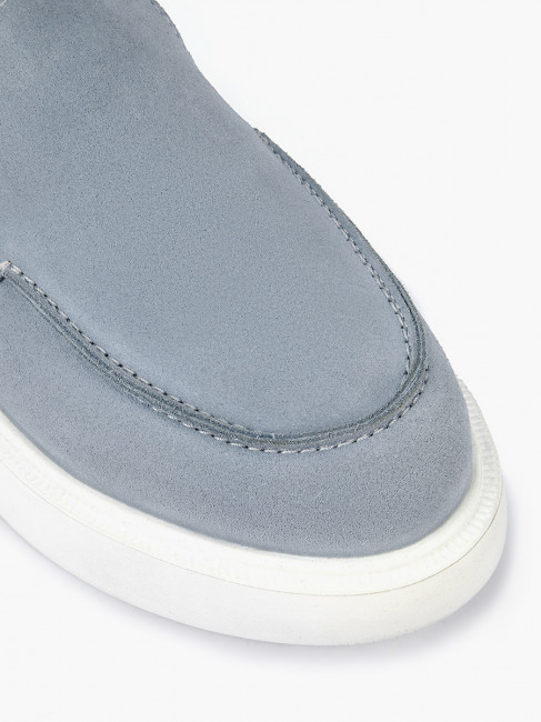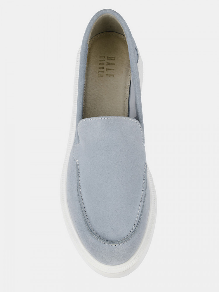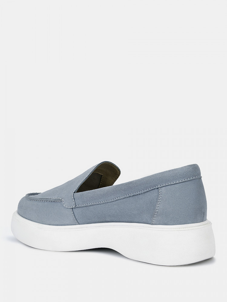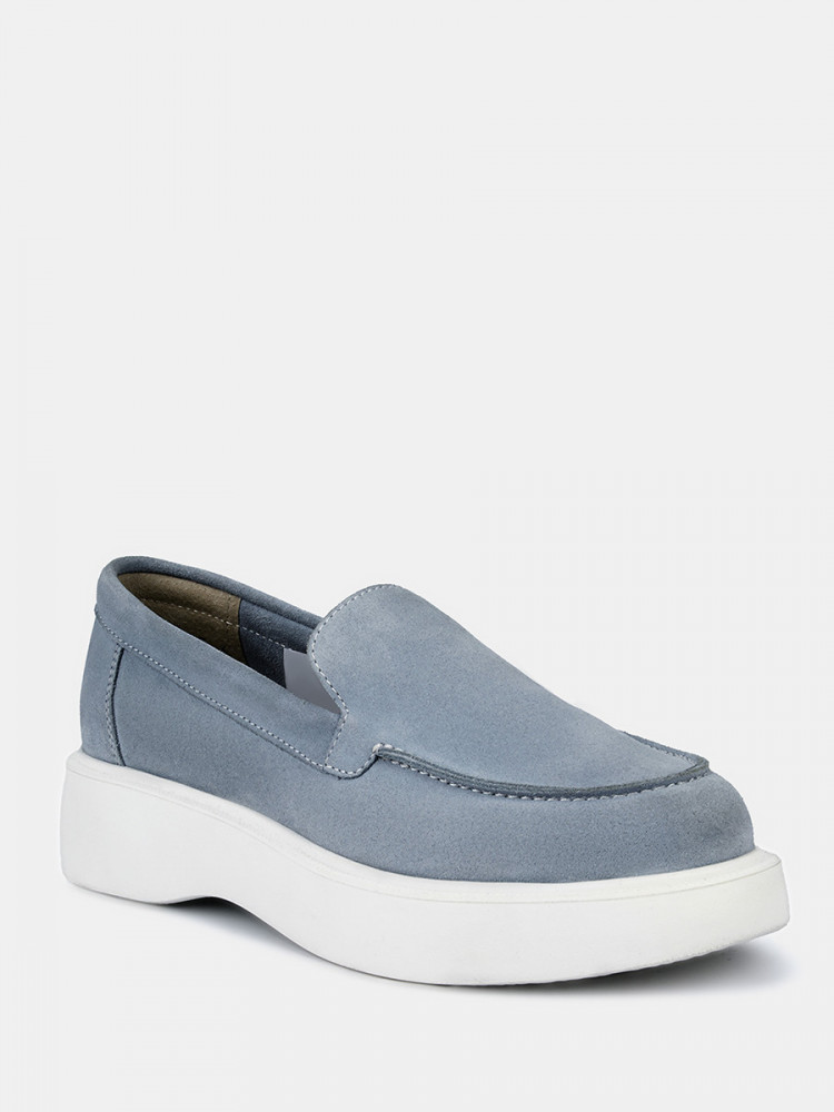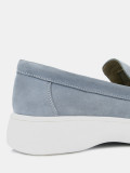 Лоферы женские LORA голубого цвета. Верх из натурального спилка позволяет ногам дышать, материал мягкий и эластичный, прекрасно садится по ноге. Подкладки нет, поэтому модель подойдет на теплую и даже жаркую погоду. Светлая стелька из натуральной кожи позволяет ногам дышать, поддерживает правильный микроклимат и не окрашивает стопы. Глубокая форма с высоким язычком надежно удерживает обувь на ногах. Легкая и гибкая полиуретановая подошва отлично амортизирует. Голубые лоферы дополнят летние костюмы в деловом стиле, а также более непринужденные образы с джинсами в стиле casual.