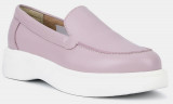 Лоферы женские LORA лилового цвета. Верх из натуральной кожи позволяет ногам дышать и прекрасно садится по ноге. Подкладки нет, поэтому модель подойдет на теплую и даже жаркую погоду. Светлая стелька из натуральной кожи позволяет ногам дышать, поддерживает правильный микроклимат и не окрашивает стопы. Глубокая форма с высоким язычком надежно удерживает обувь на ногах. Легкая и гибкая полиуретановая подошва отлично амортизирует. Розовые лоферы дополнят летние костюмы в деловом стиле, а также более непринужденные образы с джинсами в стиле casual.