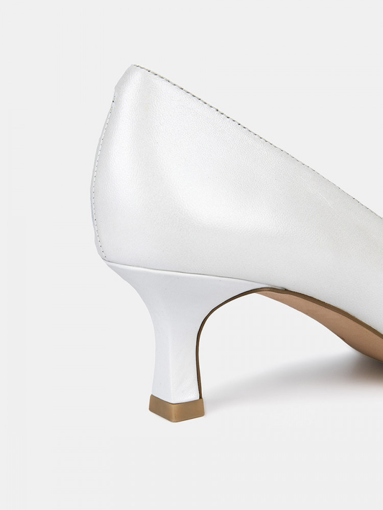 ПодробнееТуфли лодочки женские WEST белого цвета с перламутровым блеском. Зауженный носок и элегантный V-образный вырез делают стопу изящнее. Верх и стелька из натуральной кожи позволяют ногам дышать. Каблук высотой 5,5 см обтянут кожей в тон верха, что делает силуэт обуви цельным. Подошва из полимерного материала прочная и износостойкая. Белые лодочки дополнят элегантные платья и брюки для работы, а также женственные образы с джинсами на каждый день.