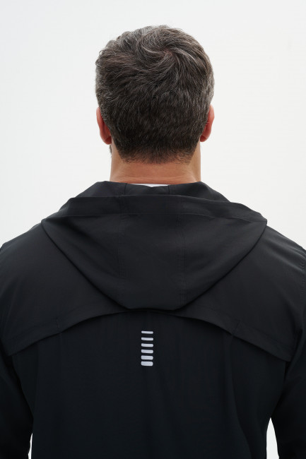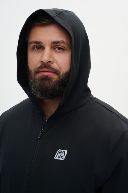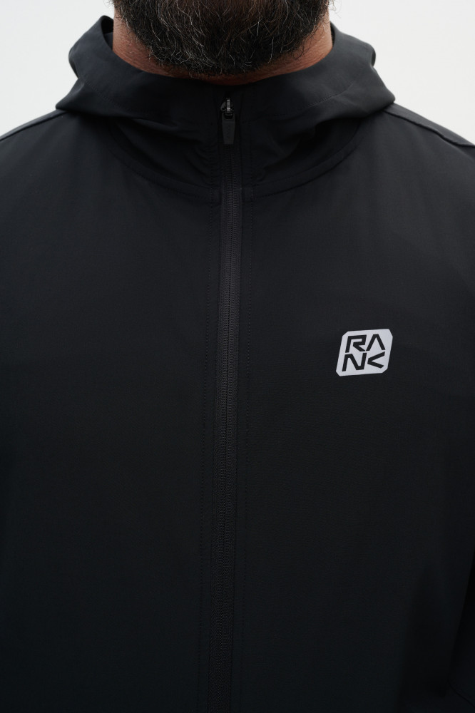 Спинка этой спортивной универсальной ветровки выполнена сприменением дополнительной вентиляционной зоны, которая сохраняет воздухообмен и предотвращает перегрев. Материал с добавлением эластана обеспечивает свободу движений. Ветровка оснащена вшитым капюшоном, светоотражающими элементами и боковыми карманами на реверсивных молниях. Центральная молния также выполнена в реверсивном варианте и дополнена пуллером с гравировкой RANK.