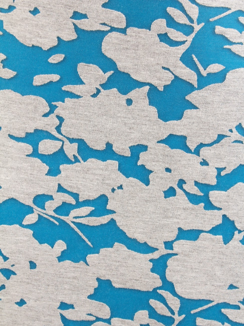 Стильная облегающая фигуру женская юбка из немнущегося Неопрена. Материал который изготавливается на основе вспениной резины. Длина изделия-выше колена. Цвет комбинированный-синий/серый с цветочной отделкой по всему изделию. Состав-100% полиэстер.
